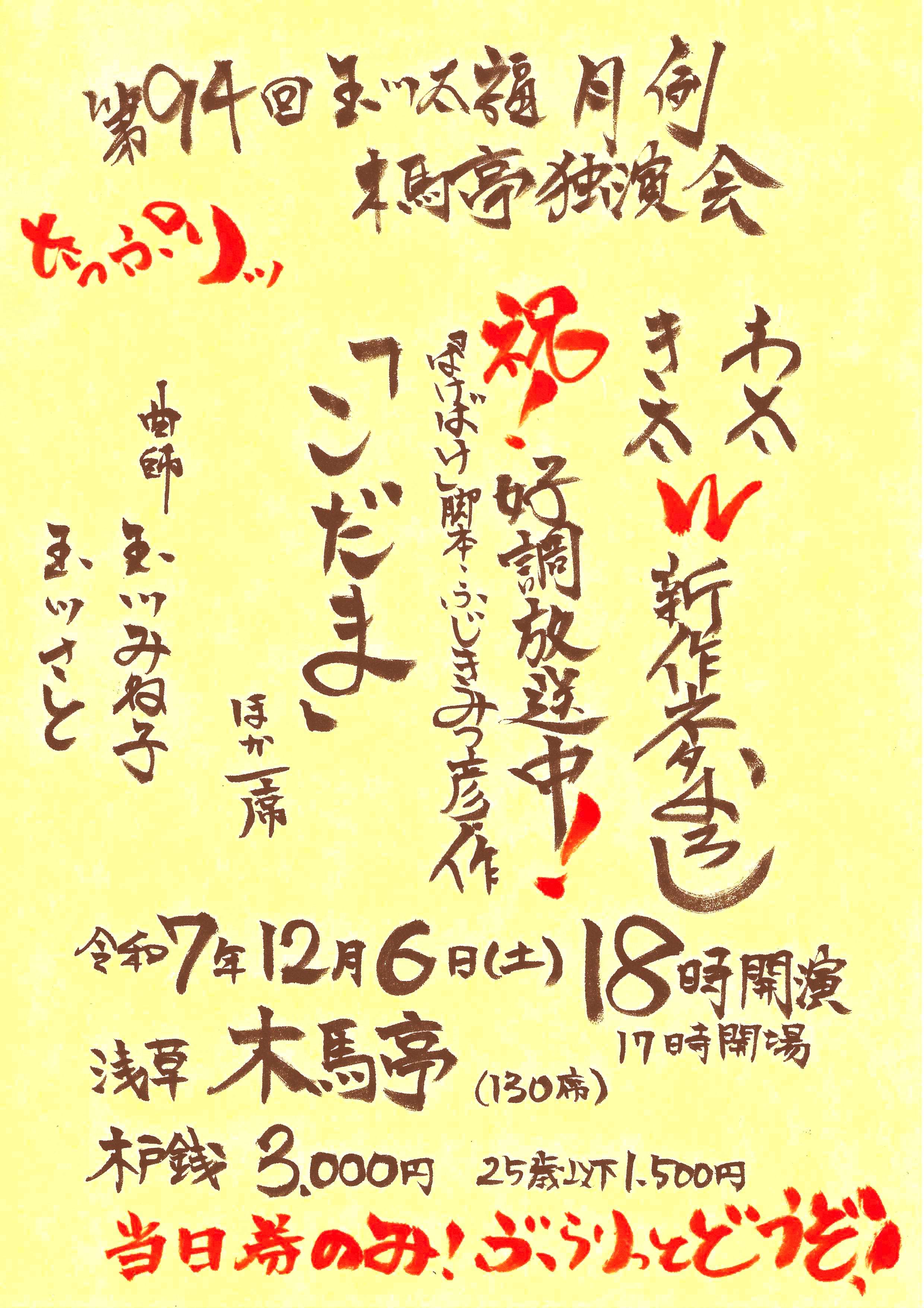 1月 元旦「浪曲定席木馬亭 新春特別公演」浅草木馬亭 11時〜 元旦「中村勘九郎 中村七之助 中村...
