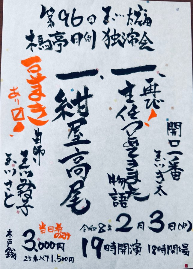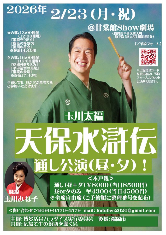 ご予約:daifukusan1031@gmail.com(独演会.com)