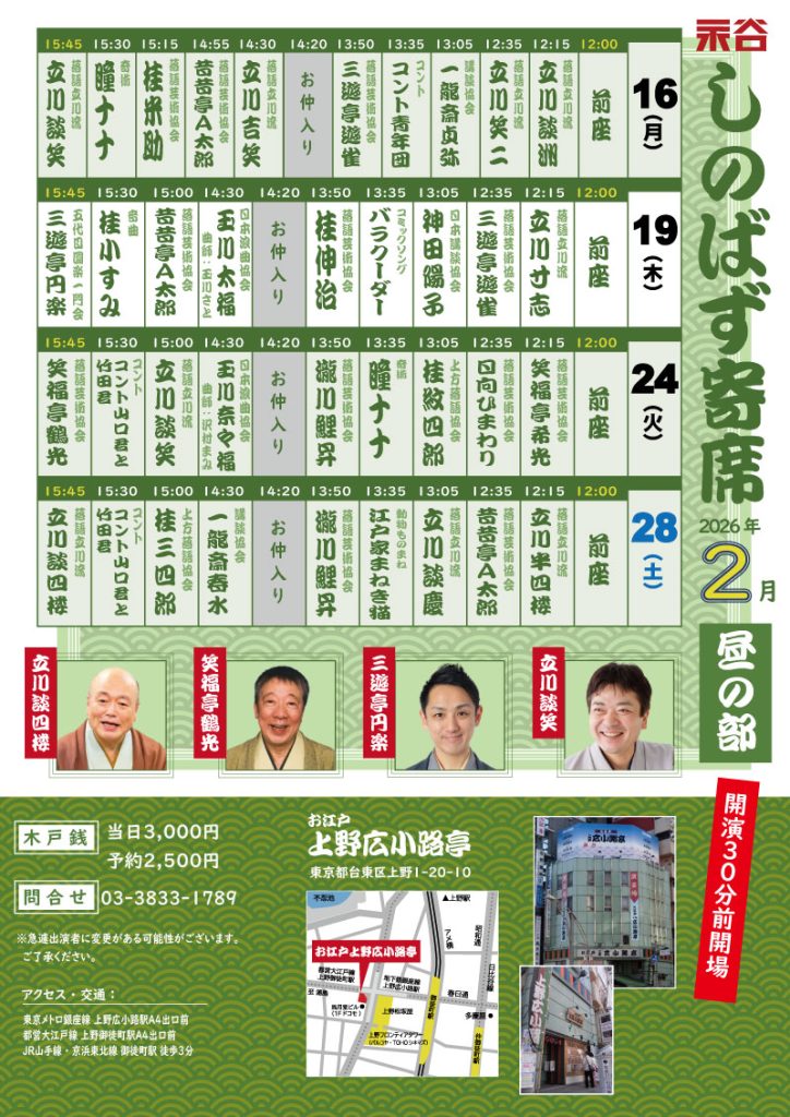 「しのばず寄席・昼の部」 12時〜15時45分