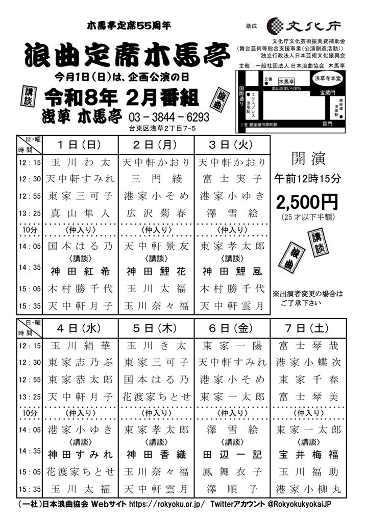 お問い合わせ:03-3844-6293(木馬亭)