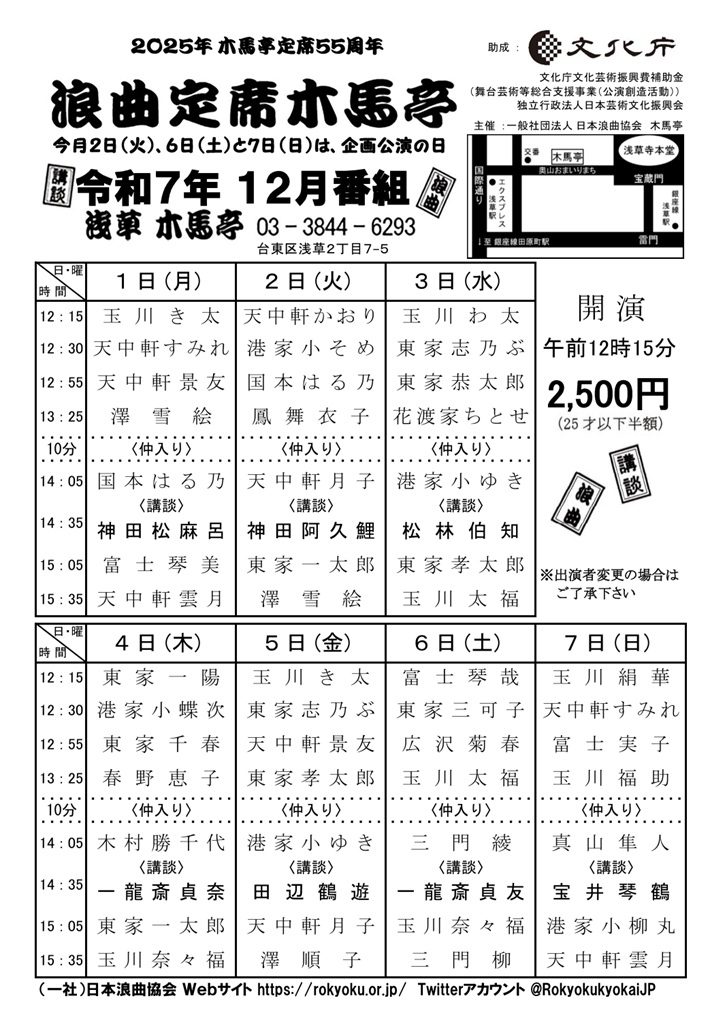 お問い合わせ:03-3841-6545(浅草演芸ホール)