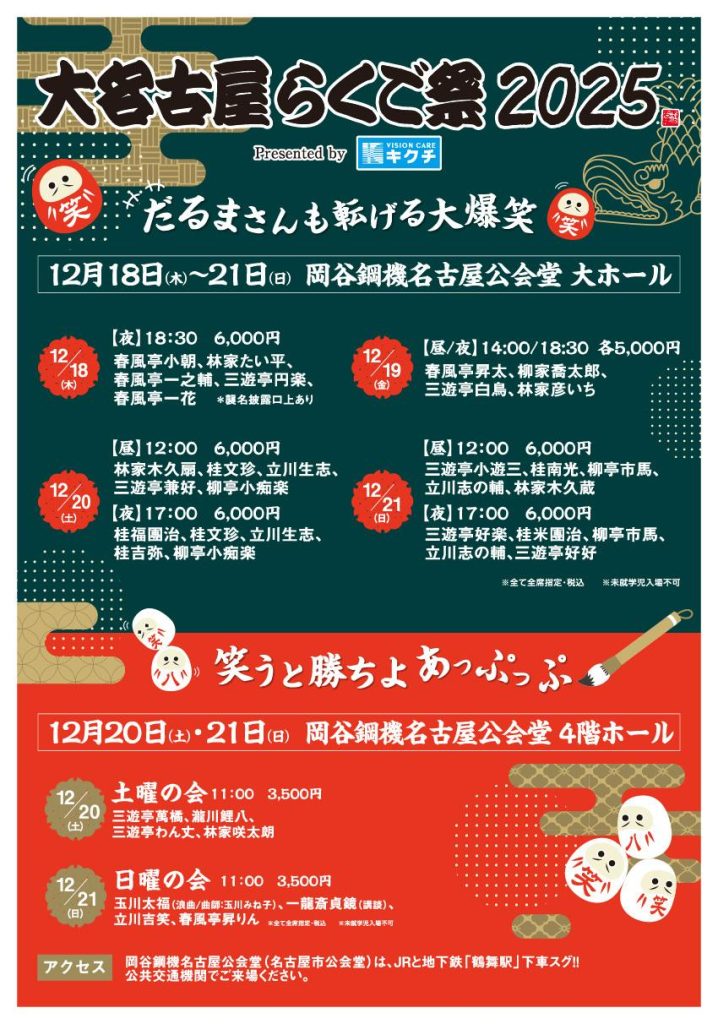「大名古屋らくご祭2025〜日曜の会」11時開演 10時30分開場