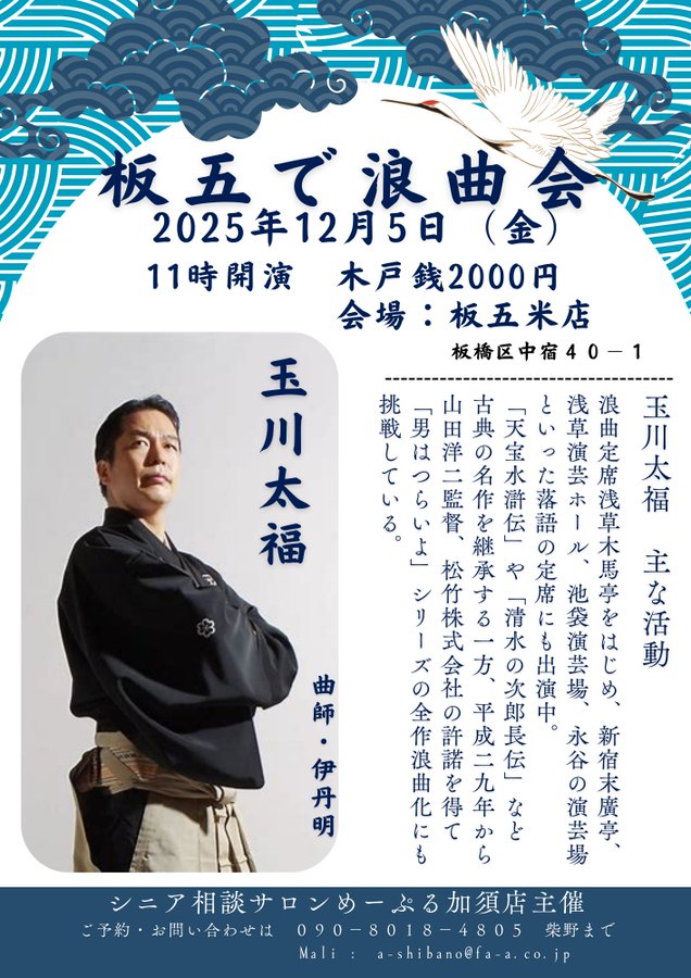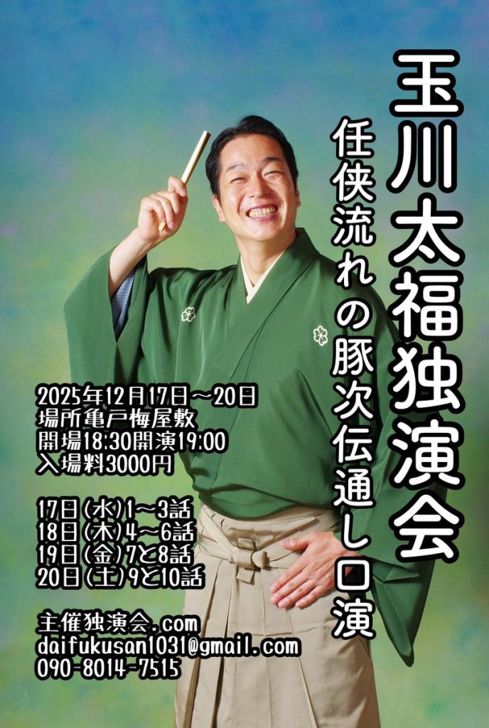 ご予約:daifukusan1031@gmail.com(独演会.com)