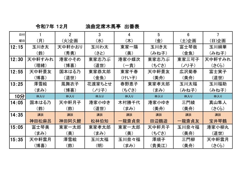 「浪曲定席木馬亭」 12時15分〜16時05分