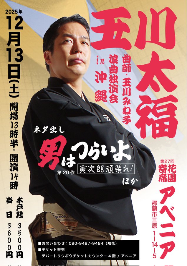 「花園寄席 玉川太福独演会 in 沖縄」14時開演 13時30分開場