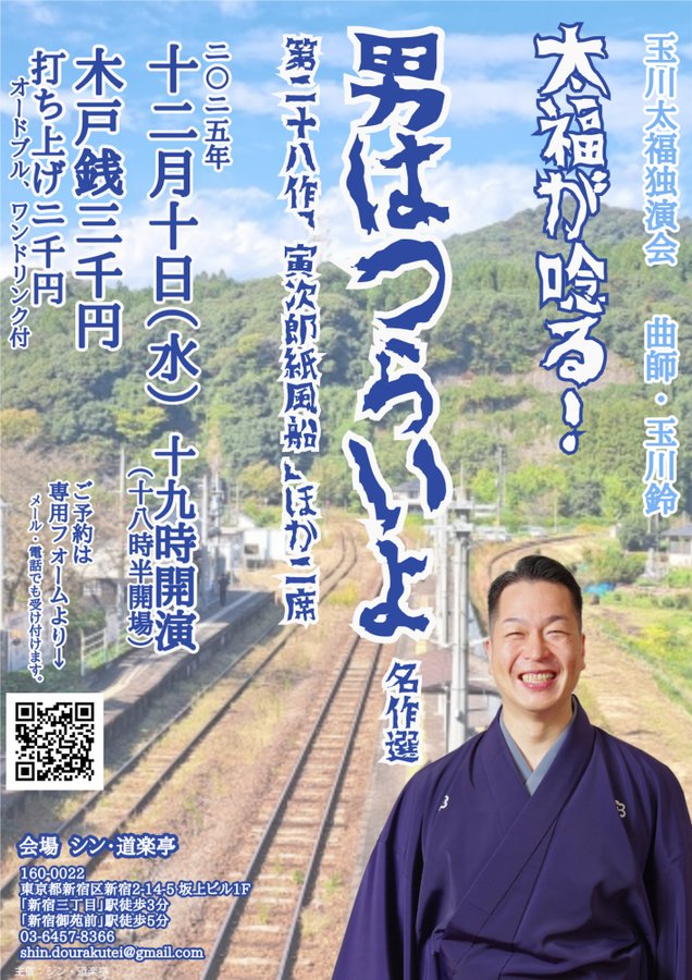 出演:玉川太福「男はつらいよ 第20作寅次郎頑張れ!」「祐子のセーター」ほか