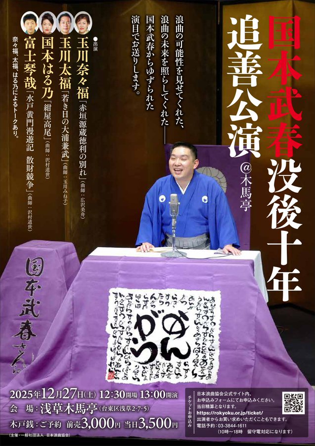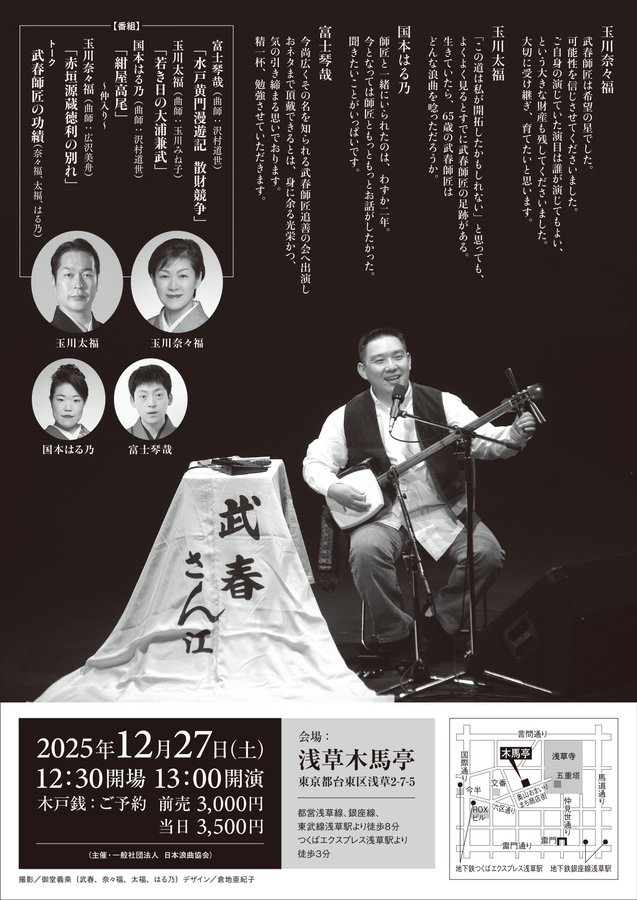 「国本武春没後十年追善公演」13時開演 12時30分開場