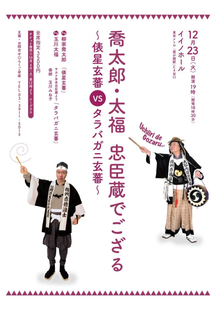 「喬太郎・太福 忠臣蔵でござる〜俵星玄蕃・タラバガニ玄蕃〜」19時開演 18時30分開場