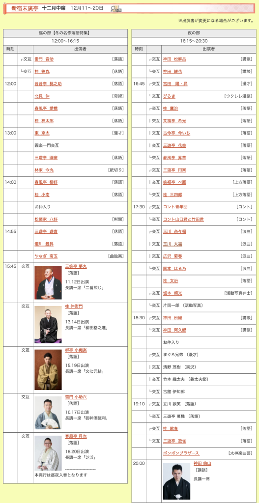 お問い合わせ:03-3354-7932(新宿末廣亭)