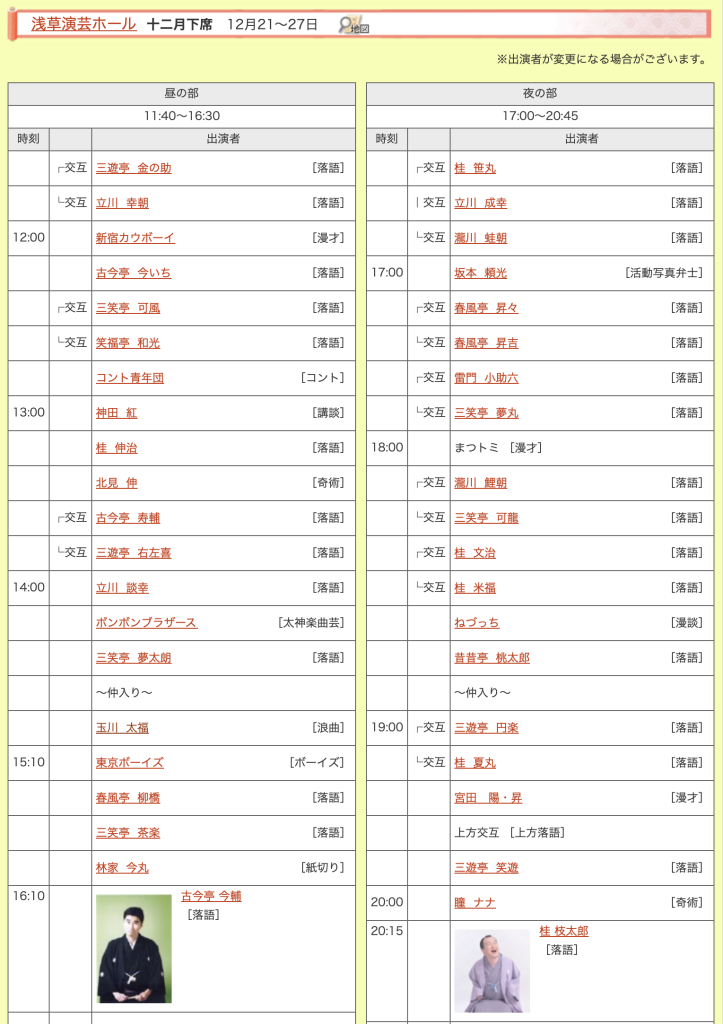 「浅草演芸ホール12月下席・昼の部」 11時40分〜16時30分